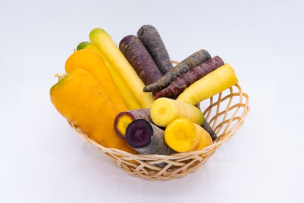 カラフル人参は産地や時期、品種によって太さ異なります。品種によっては柿のような味のするフルーツ人参もあります